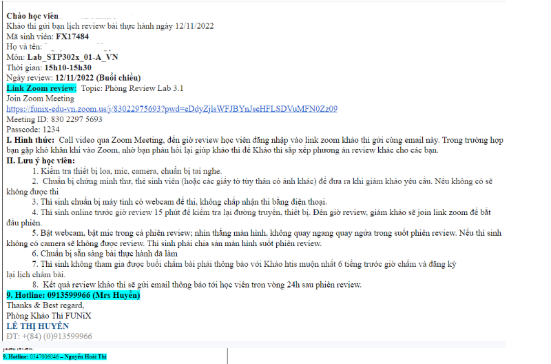 Bước 3. Học viên đăng kí thành công sẽ nhận được mail thông báo thời gian review bài assignment từ khảo thí (<asm.dept@funix.edu.vn>). Học viên sẽ nhận được mail trước 24 giờ buổi review assignment.